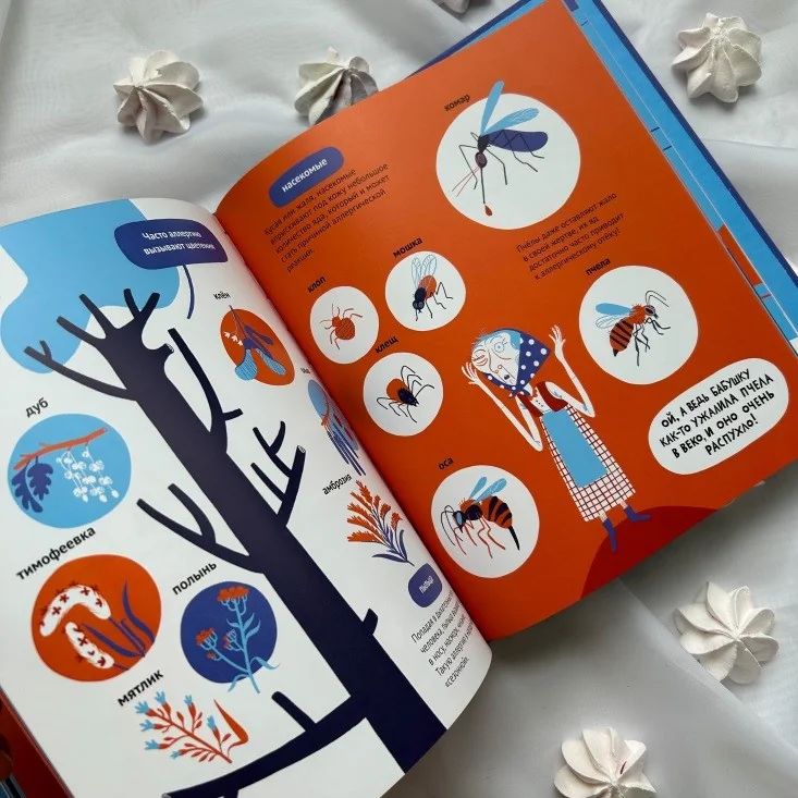 Начать знакомство с этой темой можно дома с помощью книги Кати Климовой «Аллерген». Это научный комикс, в котором сложные вещи объясняются просто и с юмором: вместе с героиней дети узнают, что такое аллергия, откуда она берётся и как с ней справляться в повседневной жизни. Родителям же можно не переживать о достоверности информации, ведь все факты проверены врачом аллергологом-иммунологом.