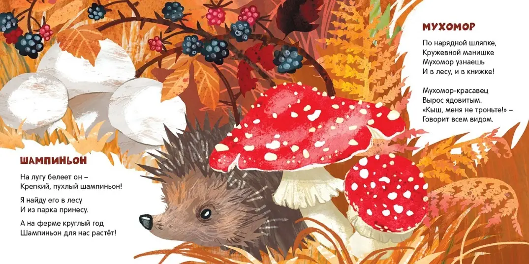 Новая книга серии «Малышки-эрудишки» познакомит маленьких читателей с грибами, о которых те уже слышали или которые даже встречали в лесу. Собранные в ней стихотворения помогут детям получить общее представление о лесных красавцах и запомнить, какие из них можно есть, а какие – нельзя, и как отличить один гриб от другого.