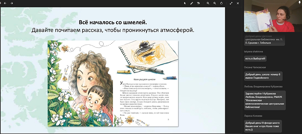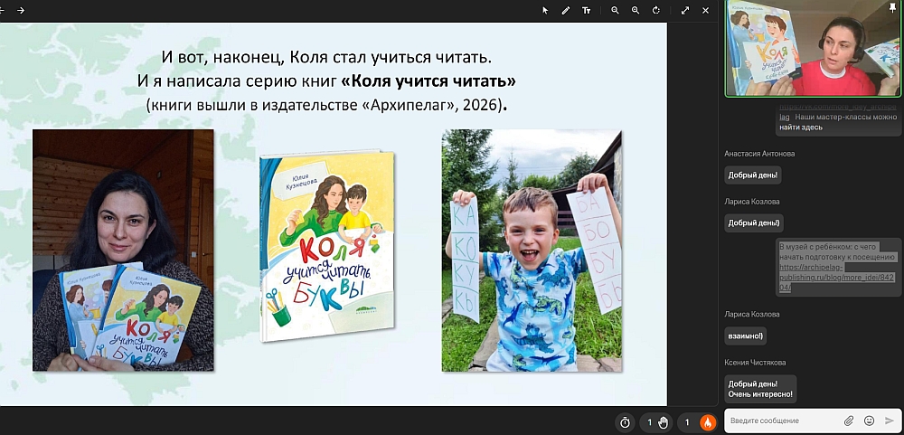13 апреля состоялся онлайн-вебинар с Юлией Кузнецовой, который объединил более 500 библиотек по всей России. Встреча была посвящена тому, как помочь детям полюбить чтение и сделать этот процесс естественным и увлекательным.