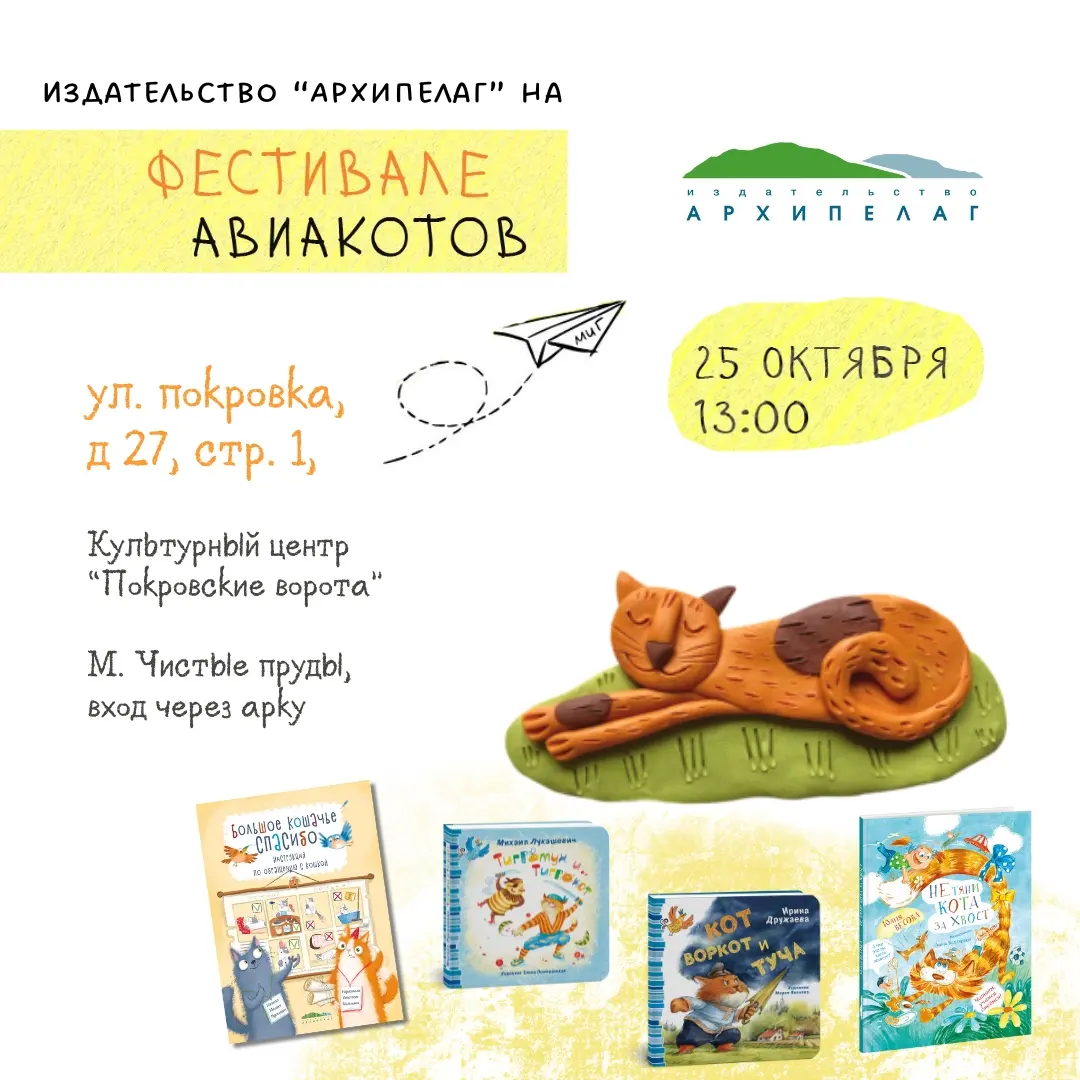 Многие книги издательства «Архипелаг» посвящены кошкам – нашим неизменно верным и порой загадочным спутникам. Среди них: «Большое кошачье спасибо» Михаила Лукашевича, «Не тяни кота за хвост» Юлии Весовой, «Кот Воркот и туча» Ирины Дружаевой, «Тигромух и Тигрокот» Михаила Лукашевича.
