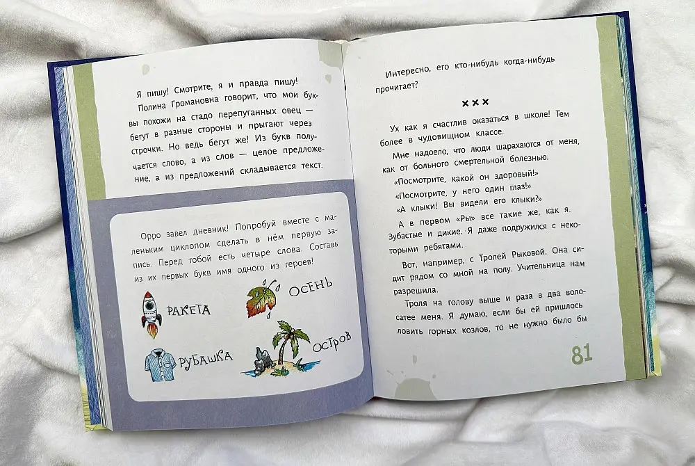 «Нужно просто зарычать» – новинка от известного детского писателя, лауреата премий «Большая сказка» и конкурса им. К. Чуковского, Ксении Горбуновой. История о маленьком циклопе Орро, мечтающем научиться читать, о необычном 1 «Ры» классе, где учатся тролли и привидения, и об их мудрой учительнице, которая несмотря ни на что верит в силы и способности своих учеников.