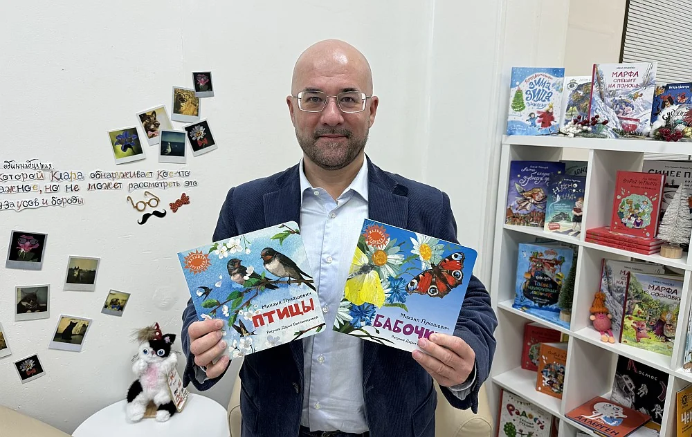 19 февраля в 10:30 в библиотеке им. А. П. Гайдара состоится встреча с писателем и поэтом Михаилом Лукашевичем, на которой он представит новые книги «Бабочки» и «Птицы» из познавательной серии книг-картонок «Малышки-эрудишки».