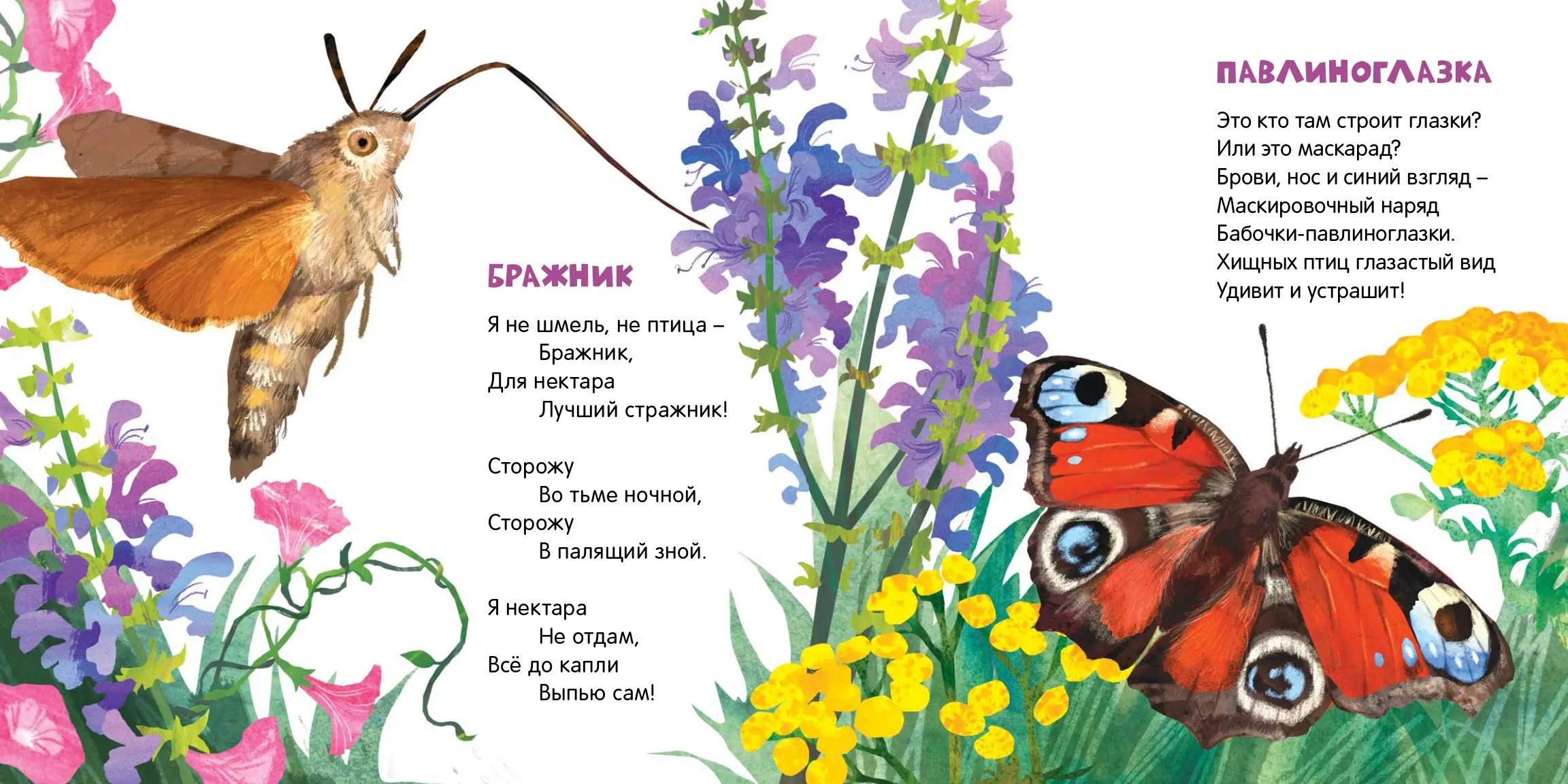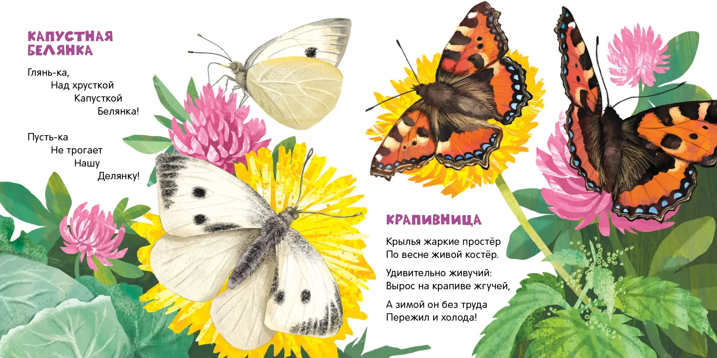 Помочь малышу понять, насколько важно ценить и беречь этих уникальных насекомых, и призвана эта книга. В ней собраны небольшие стихотворения с интересными фактами о десяти бабочках: от широко распространённой во многих регионах капустной белянки и привычной крапивницы до бражника и красавца-аполлона.